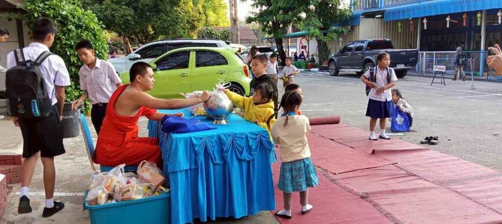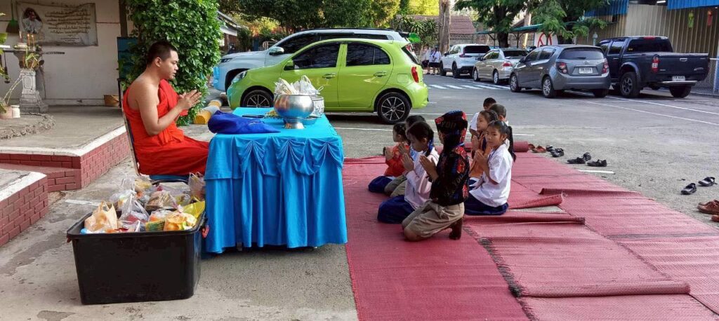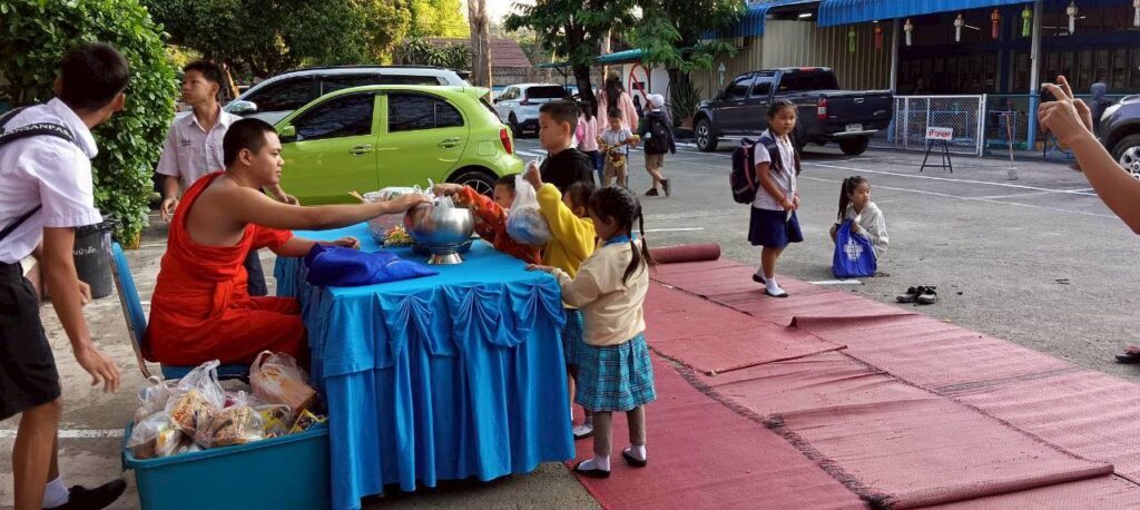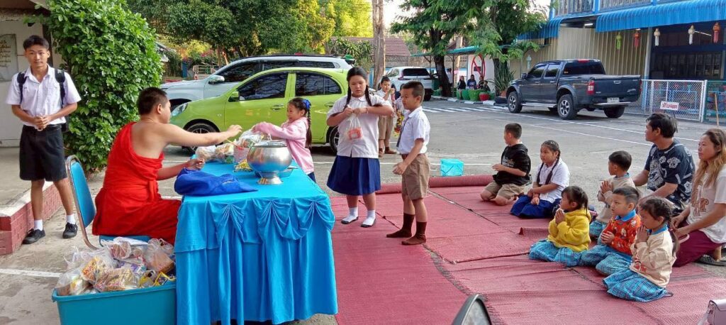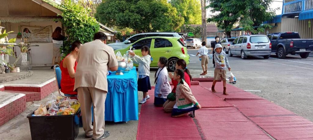 On Monday, March 2, 2026, parents, school administrators, teachers, students, and devoted participants joined in offering alms to one monk on the occasion of Makha Bucha Day 2026.