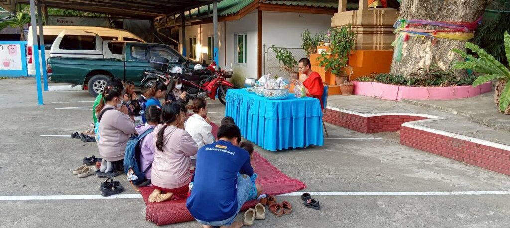 The ceremony was held at the multipurpose courtyard in front of the shrine of Phor Pu Khun Sansai Songsak at Ban San Pa Sak School. The activity aimed to promote morality and ethics, as well as to preserve Buddhism on the occasion of Makha Bucha Day, an important Buddhist holy day.